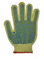 Material: 100% Kevlar with PVC Polka Dots on Both Sides PVC Finger tip and Thumb Crotch Protection.